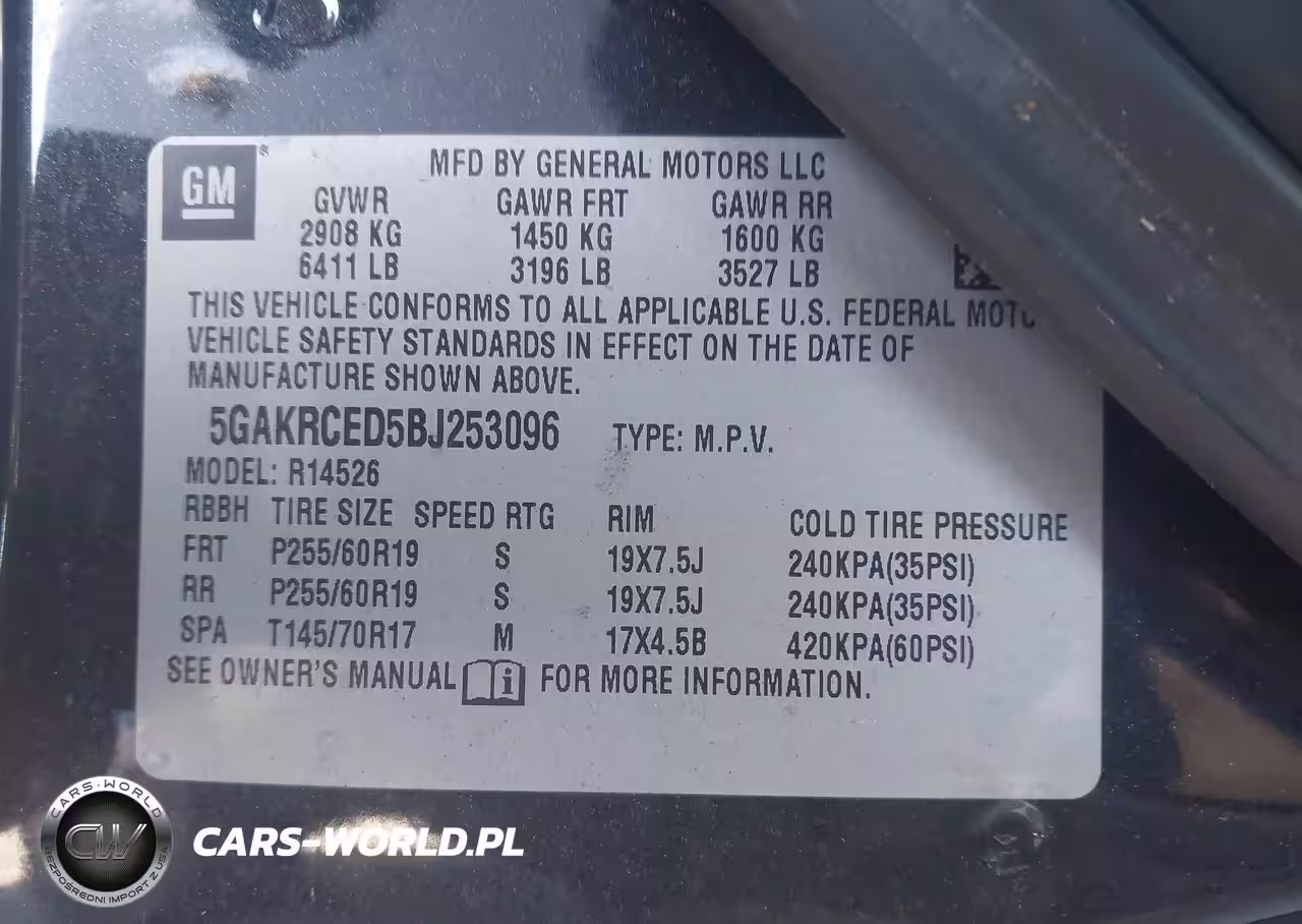 IAAI Nr: I-44450319 VIN: 5GAKRCED5BJ253096 Port: Savannah, GA