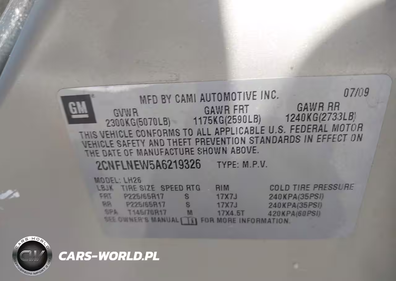 IAAI Nr: I-44450418 VIN: 2CNFLNEW5A6219326 Port: Savannah, GA
