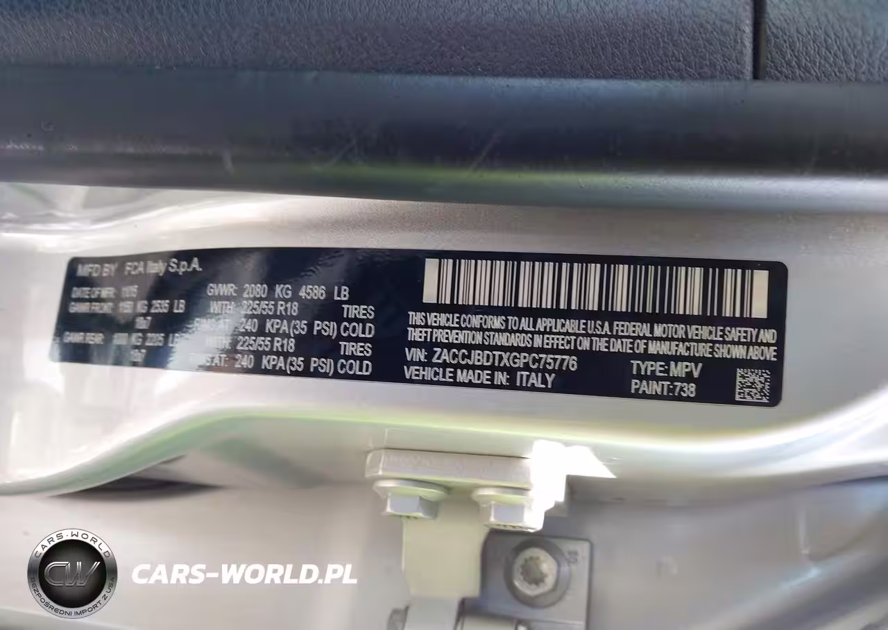 IAAI Nr: I-44450445 VIN: ZACCJBDTXGPC75776 Port: Elizabeth, NJ