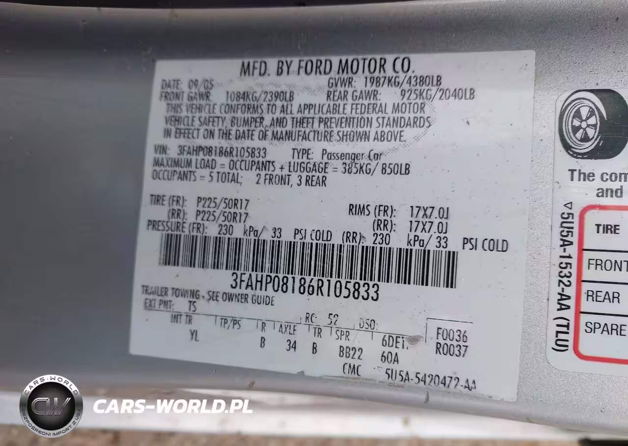 IAAI Nr: I-44450745 VIN: 3FAHP08186R105833 Port: Houston, TX