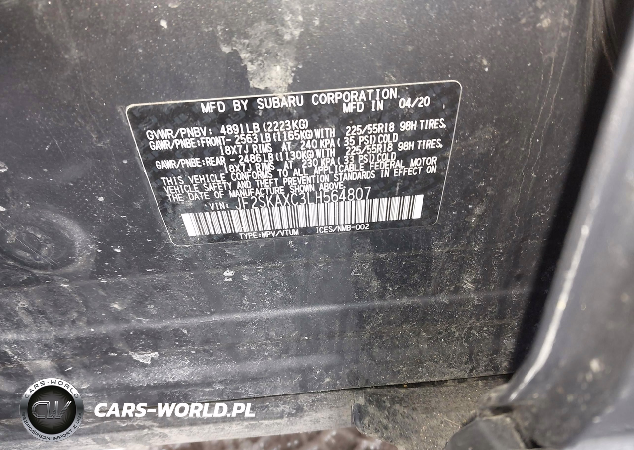 IAAI Nr: I-44451304 VIN: JF2SKAXC3LH564807 Port: Elizabeth, NJ
