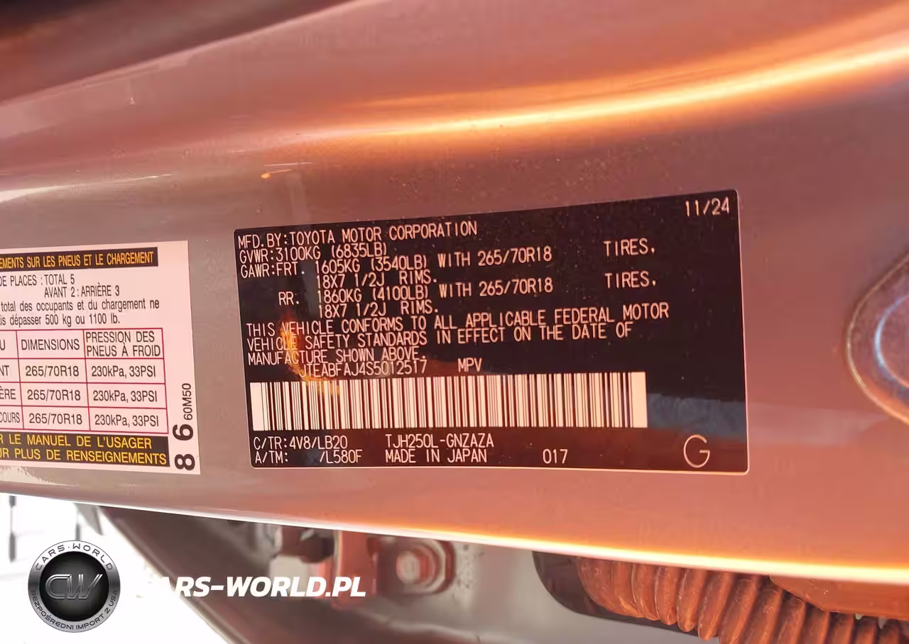 IAAI Nr: I-44451708 VIN: JTEABFAJ4S5012517 Port: Houston, TX