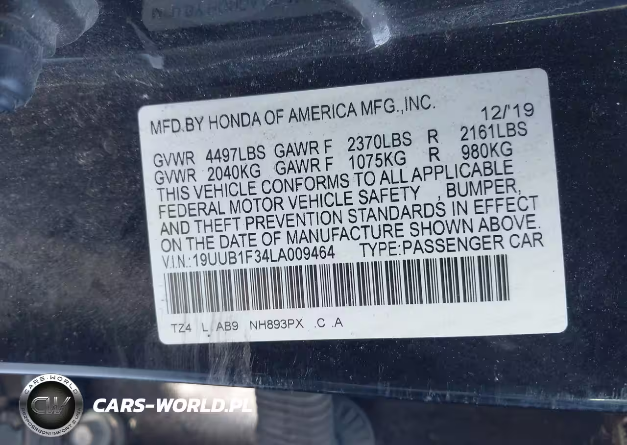 IAAI Nr: I-44452045 VIN: 19UUB1F34LA009464 Port: Indianapolis, IN