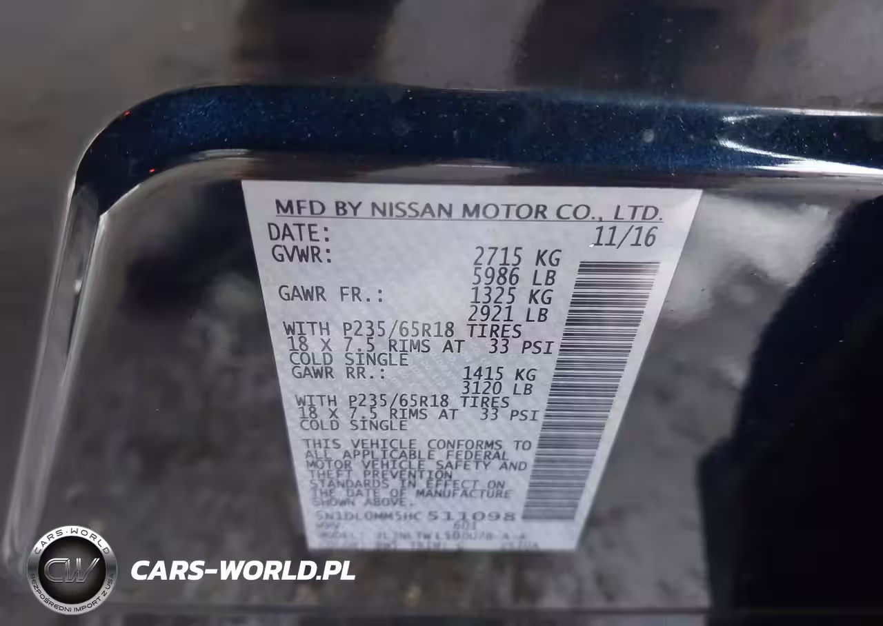 IAAI Nr: I-44452223 VIN: 5N1DL0MM5HC511098 Port: Elizabeth, NJ