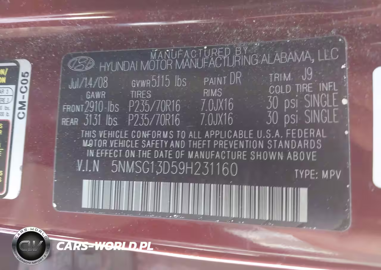 IAAI Nr: I-44452629 VIN: 5NMSG13D59H231160 Port: Los Angeles, CA