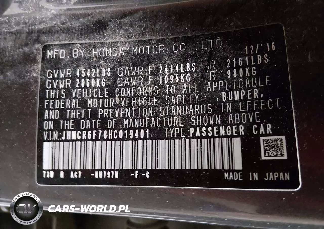 IAAI Nr: I-44452898 VIN: JHMCR6F78HC019401 Port: Savannah, GA