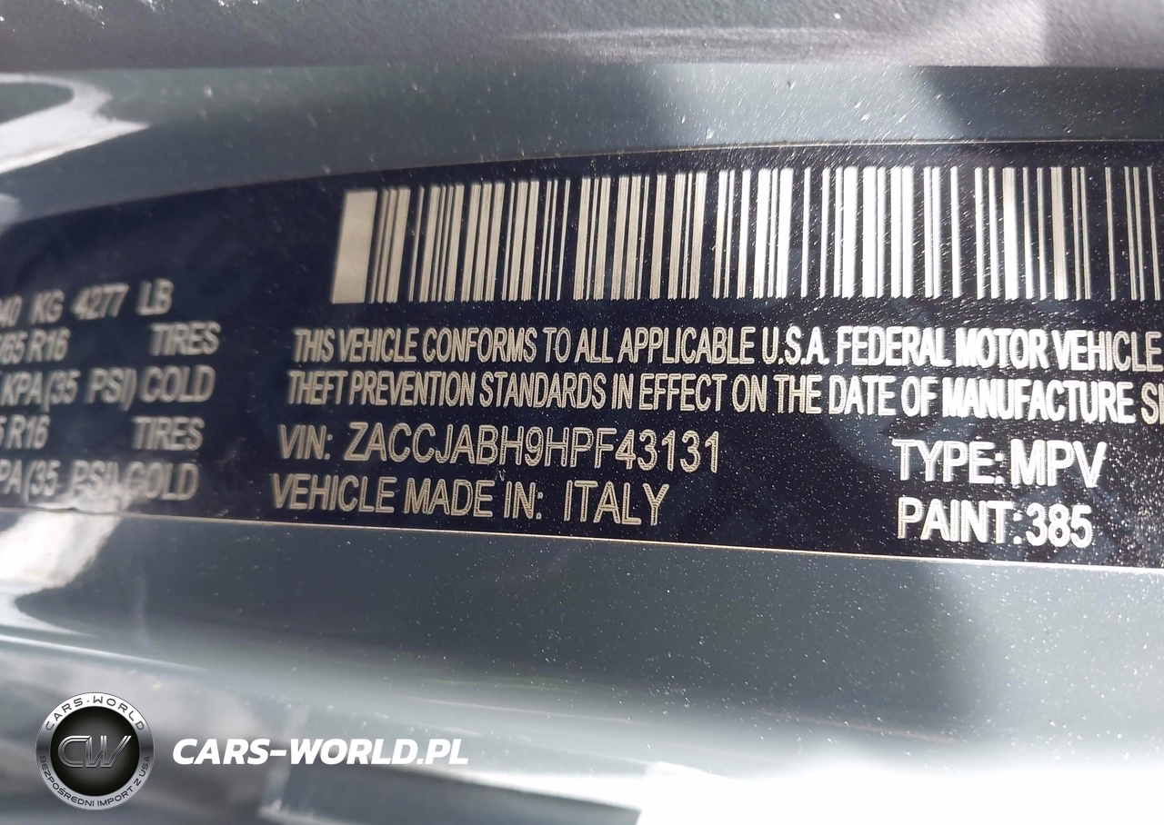 IAAI Nr: I-44452934 VIN: ZACCJABH9HPF43131 Port: Indianapolis, IN