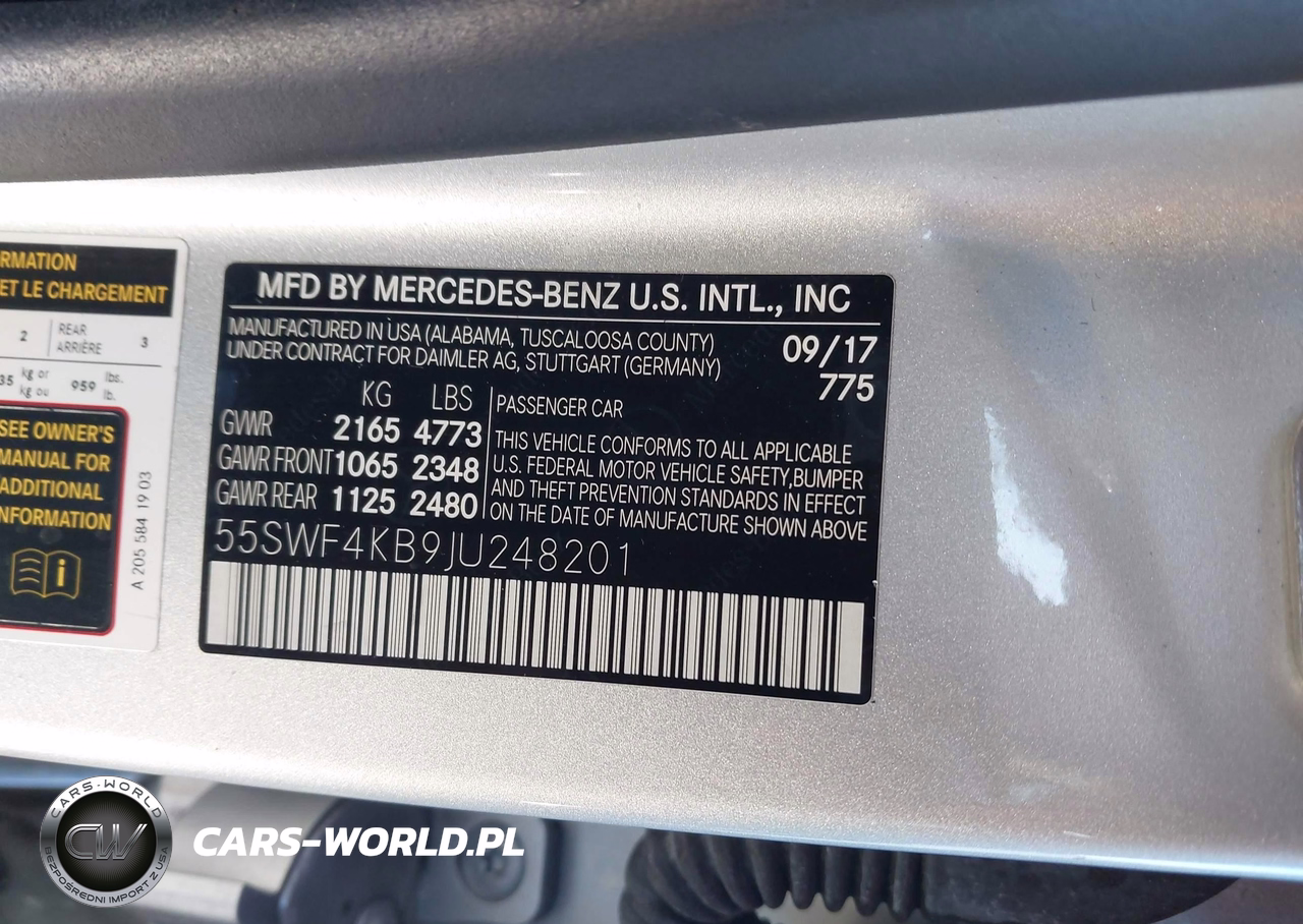 IAAI Nr: I-44454217 VIN: 55SWF4KB9JU248201 Port: Elizabeth, NJ