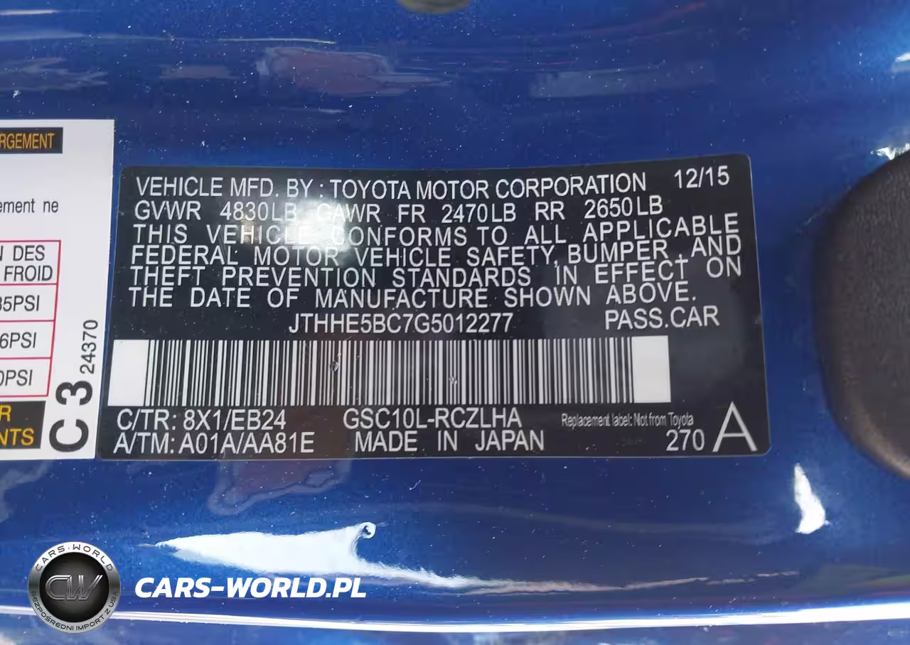 IAAI Nr: I-44454532 VIN: JTHHE5BC7G5012277 Port: Los Angeles, CA