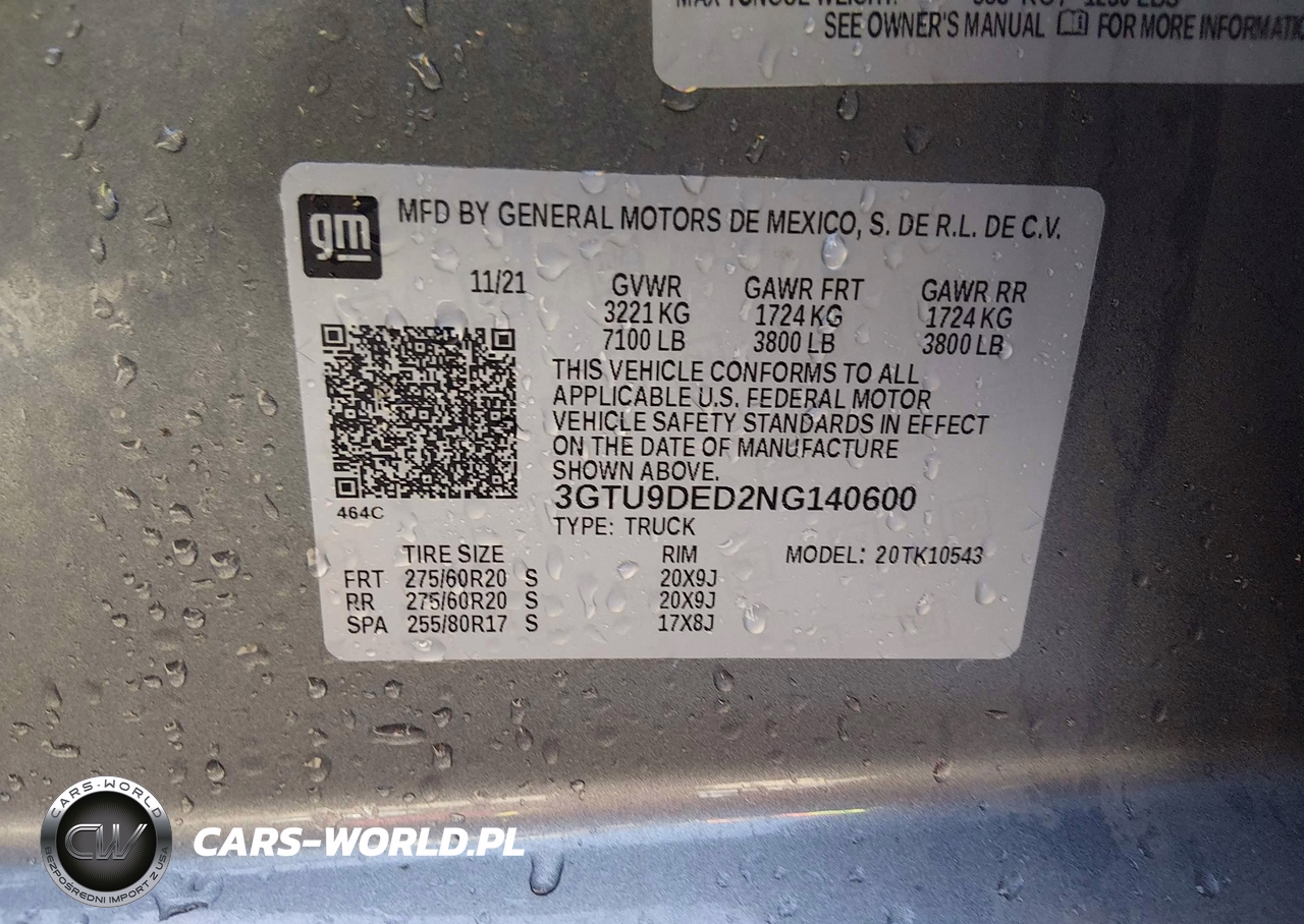 IAAI Nr: I-44454777 VIN: 3GTU9DED2NG140600 Port: Houston, TX