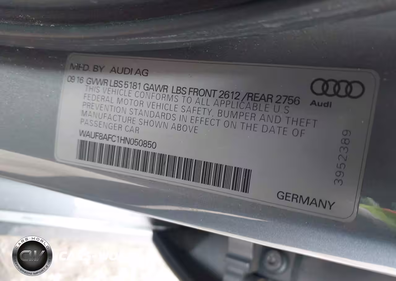 IAAI Nr: I-44455948 VIN: WAUF8AFC1HN050850 Port: Indianapolis, IN