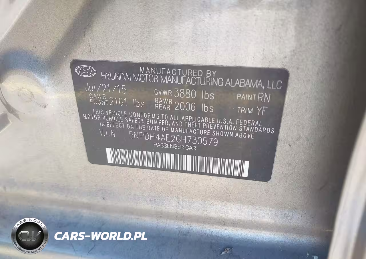 IAAI Nr: I-44456239 VIN: 5NPDH4AE2GH730579 Port: Savannah, GA