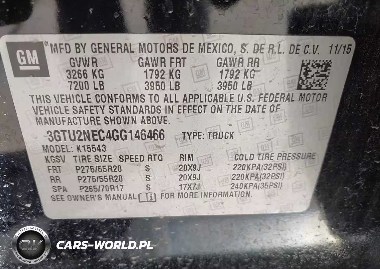IAAI Nr: I-44456755 VIN: 3GTU2NEC4GG146466 Port: Houston, TX