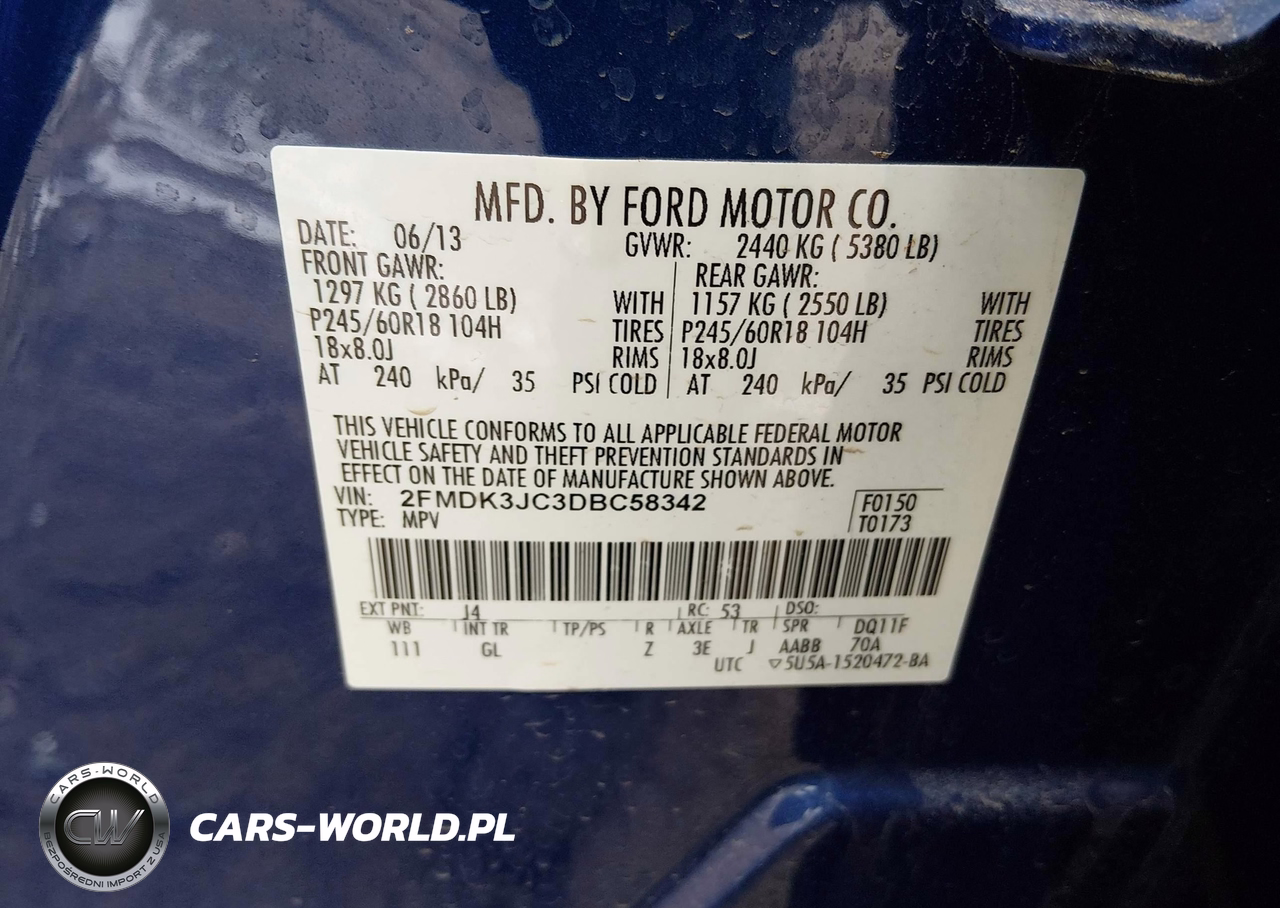IAAI Nr: I-44456807 VIN: 2FMDK3JC3DBC58342 Port: Indianapolis, IN