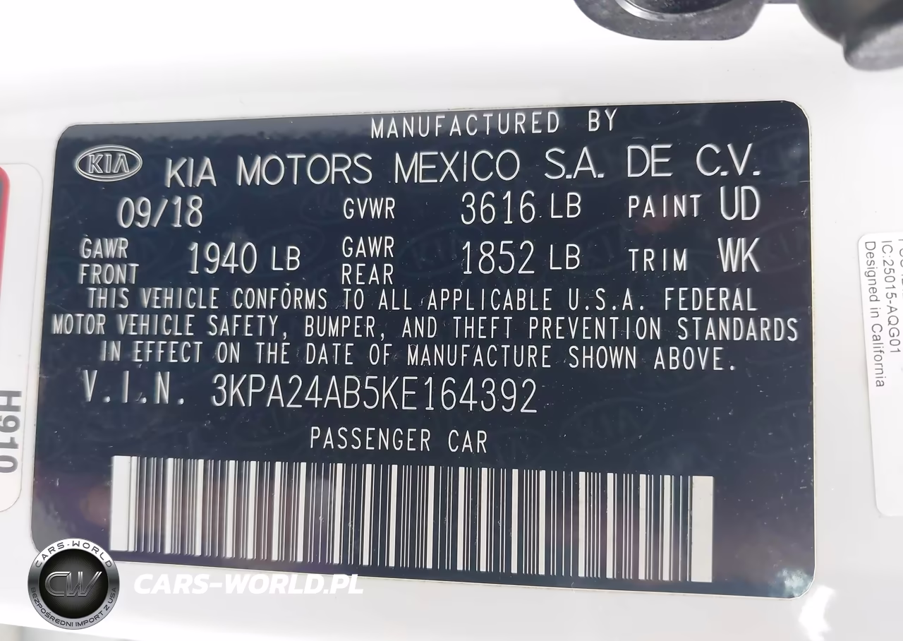 IAAI Nr: I-44457142 VIN: 3KPA24AB5KE164392 Port: Los Angeles, CA