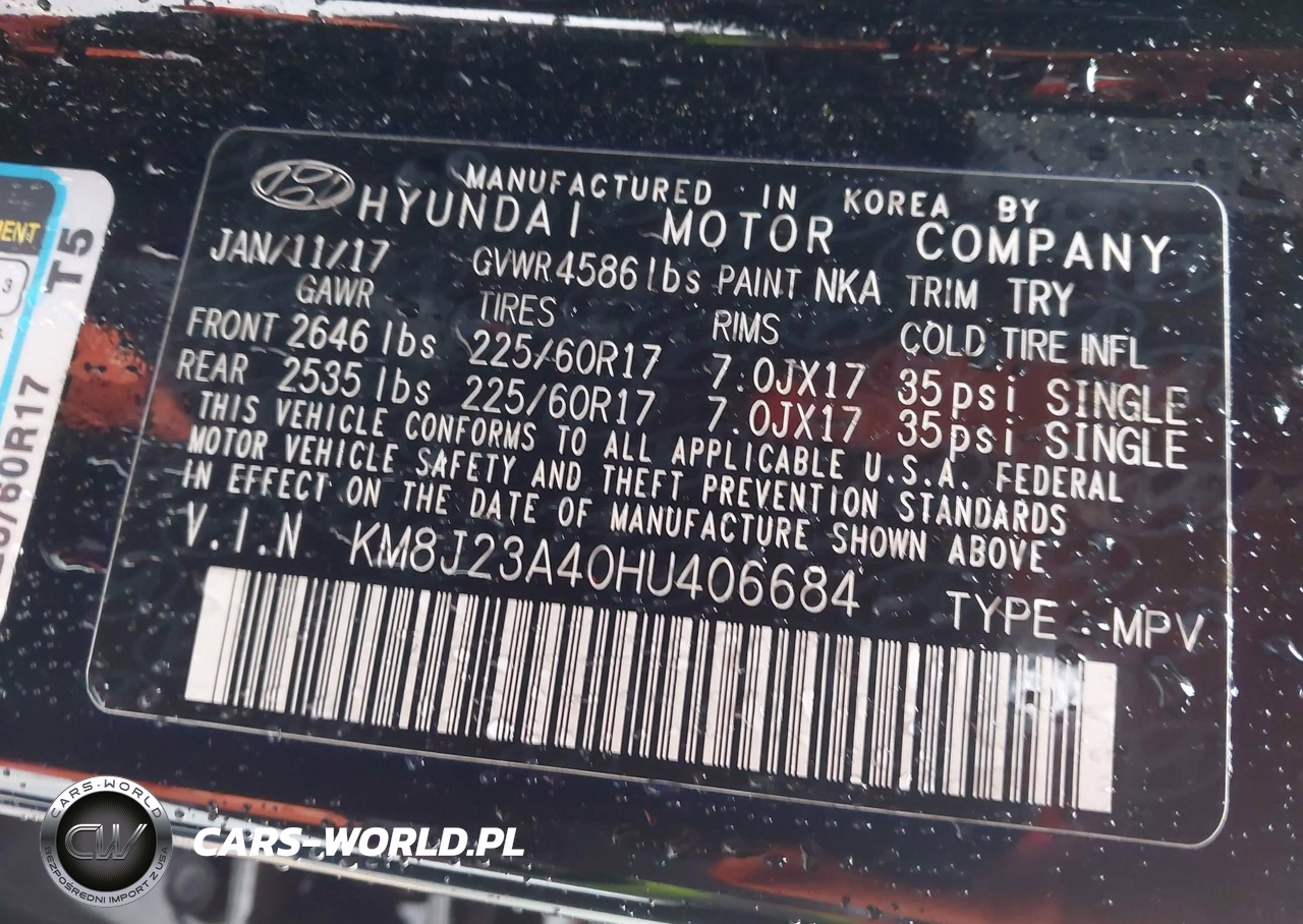 IAAI Nr: I-44457304 VIN: KM8J23A40HU406684 Port: Los Angeles, CA