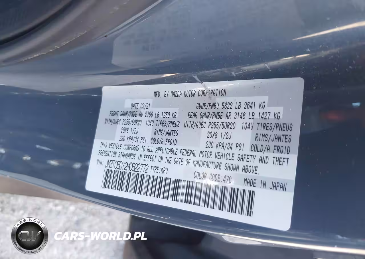 IAAI Nr: I-44457403 VIN: JM3TCBDY2M0522772 Port: Los Angeles, CA