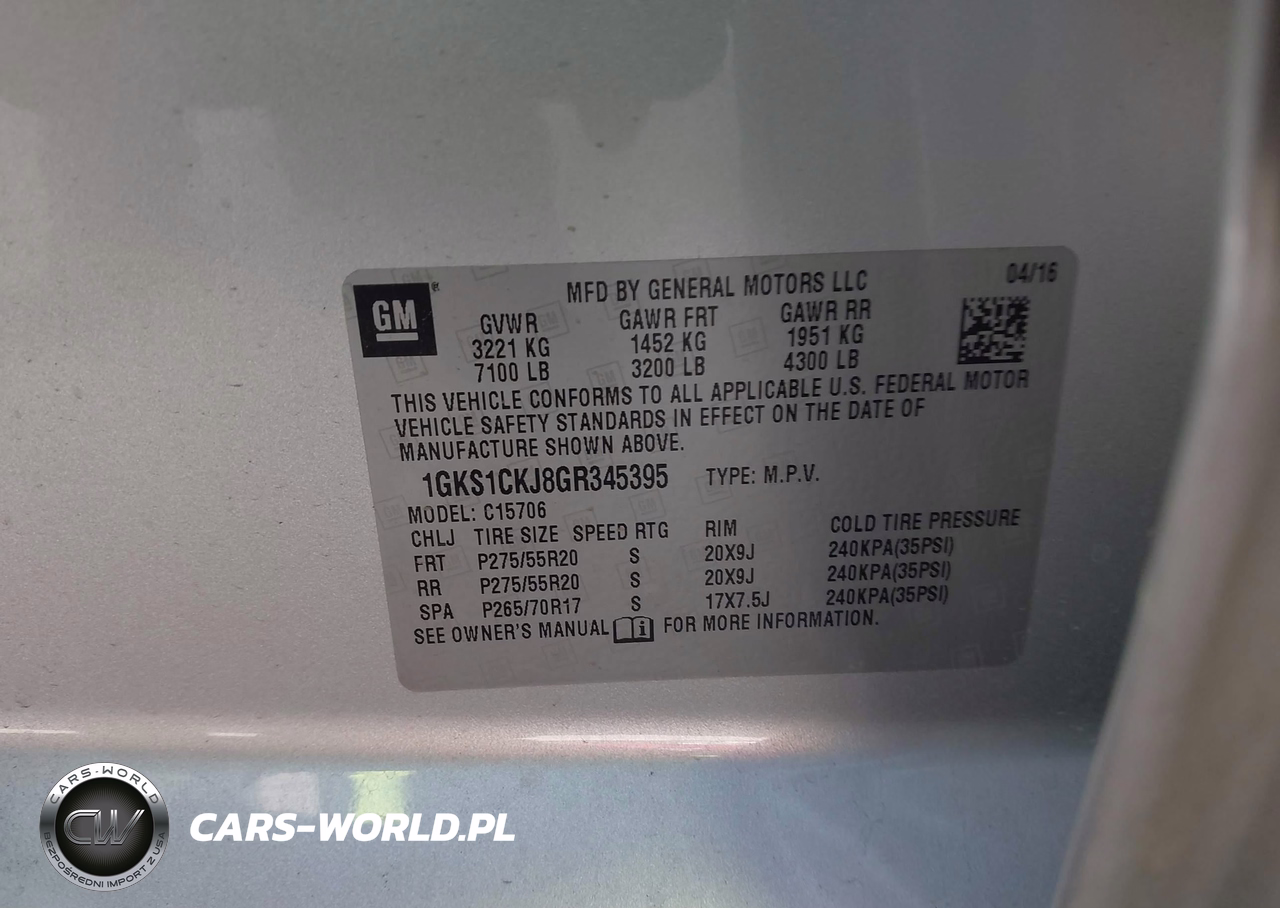 IAAI Nr: I-44457419 VIN: 1GKS1CKJ8GR345395 Port: Houston, TX
