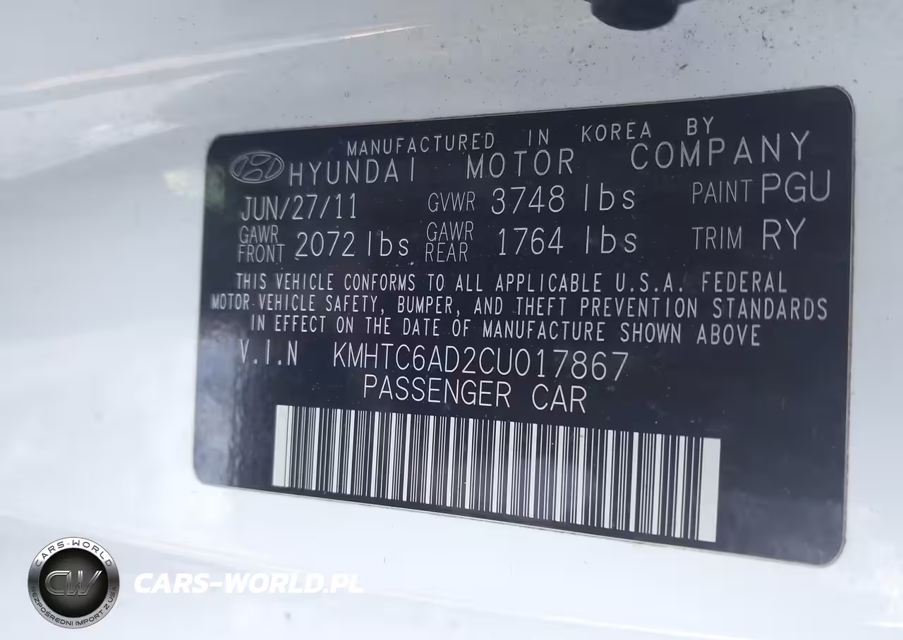 IAAI Nr: I-44458429 VIN: KMHTC6AD2CU017867 Port: Elizabeth, NJ