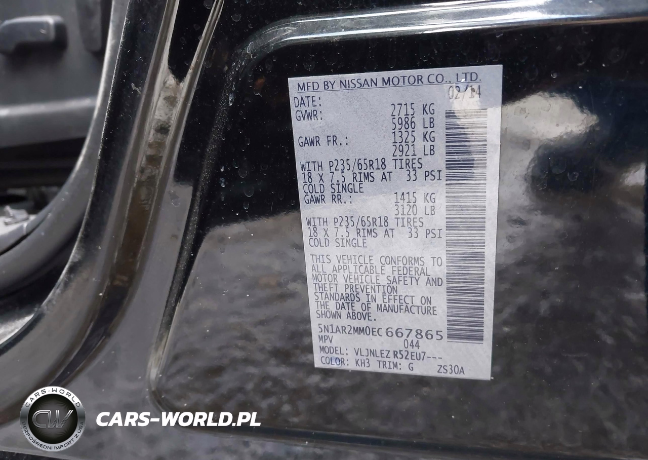IAAI Nr: I-44460224 VIN: 5N1AR2MM0EC667865 Port: Elizabeth, NJ