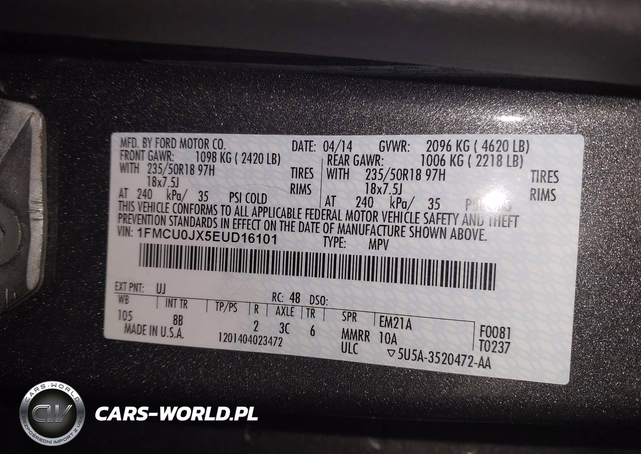 IAAI Nr: I-44461579 VIN: 1FMCU0JX5EUD16101 Port: Savannah, GA