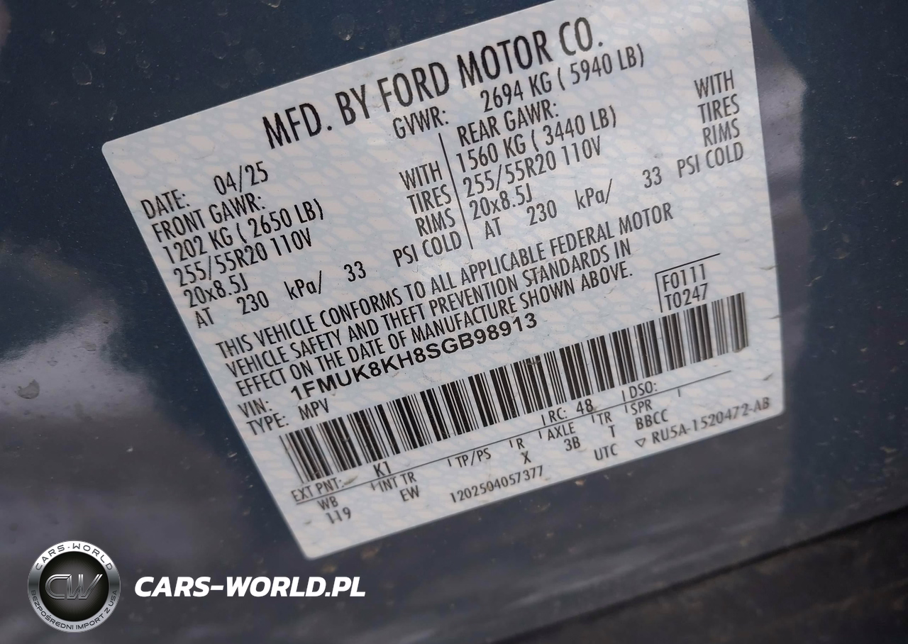 IAAI Nr: I-44461849 VIN: 1FMUK8KH8SGB98913 Port: Indianapolis, IN