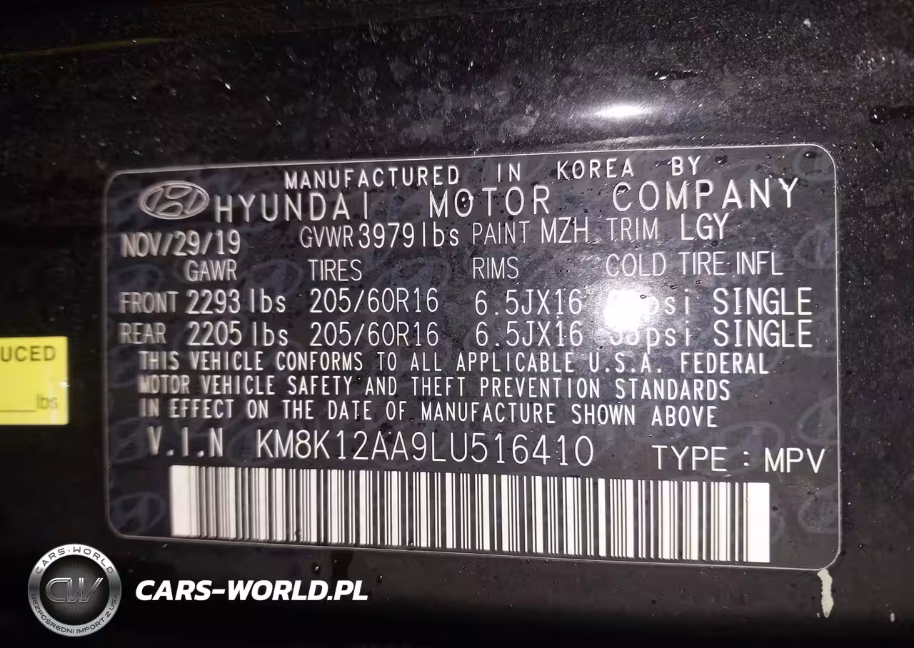 IAAI Nr: I-44461885 VIN: KM8K12AA9LU516410 Port: Indianapolis, IN