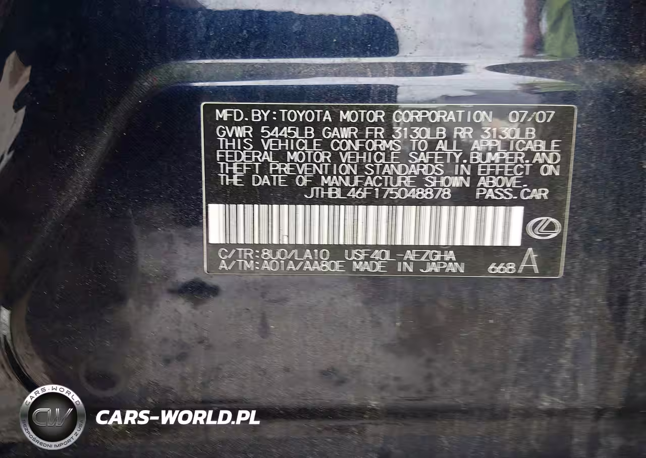 IAAI Nr: I-44462031 VIN: JTHBL46F175048878 Port: Indianapolis, IN