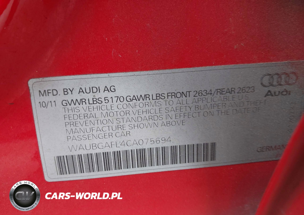 IAAI Nr: I-44462089 VIN: WAUBGAFL4CA075694 Port: Houston, TX