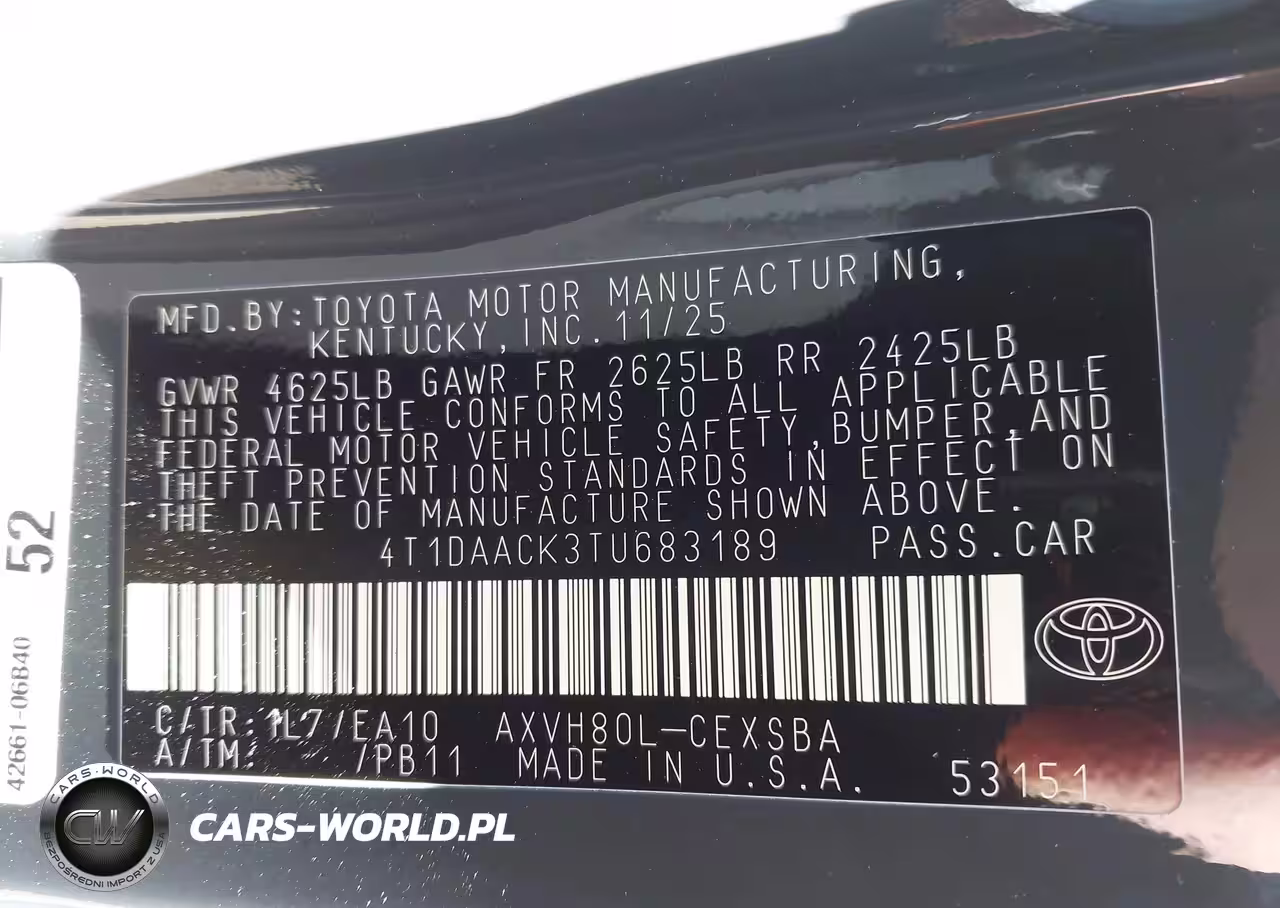IAAI Nr: I-44462822 VIN: 4T1DAACK3TU683189 Port: Savannah, GA