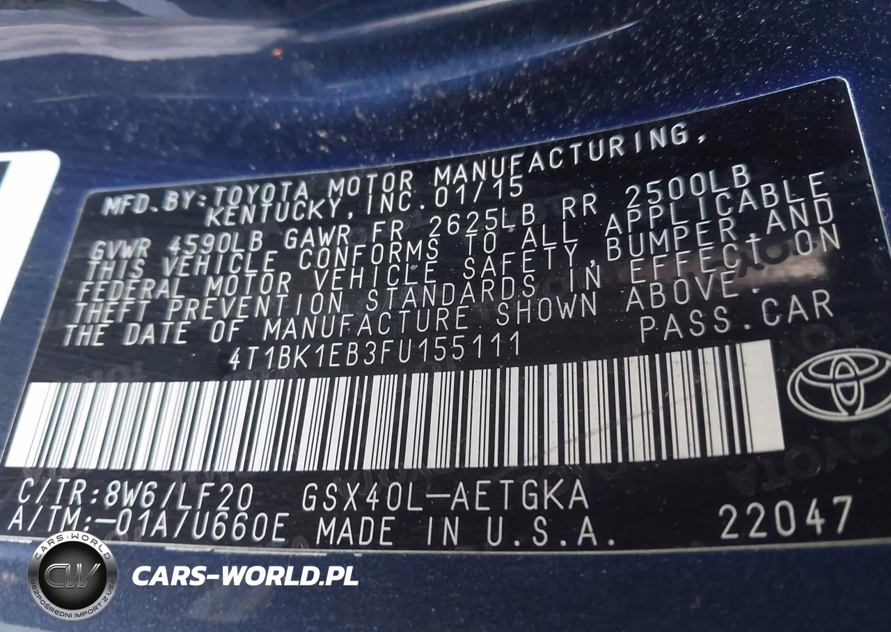 IAAI Nr: I-44464591 VIN: 4T1BK1EB3FU155111 Port: Indianapolis, IN