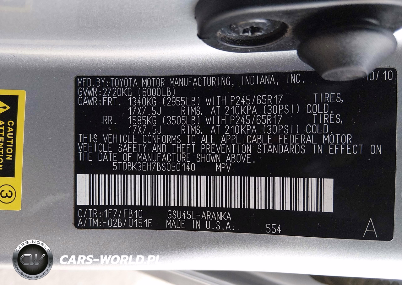 IAAI Nr: I-44464970 VIN: 5TDBK3EH7BS050140 Port: Elizabeth, NJ