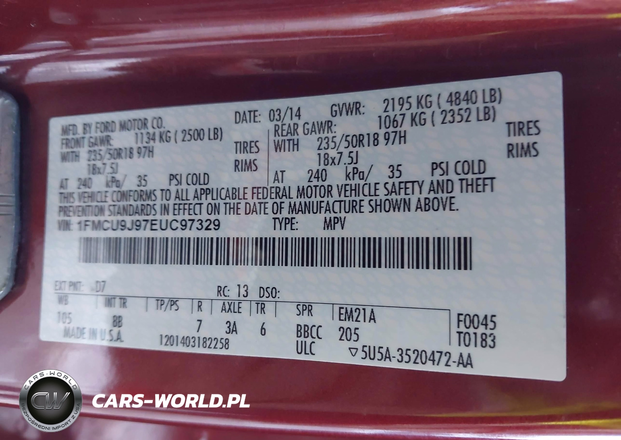 IAAI Nr: I-44466115 VIN: 1FMCU9J97EUC97329 Port: Elizabeth, NJ