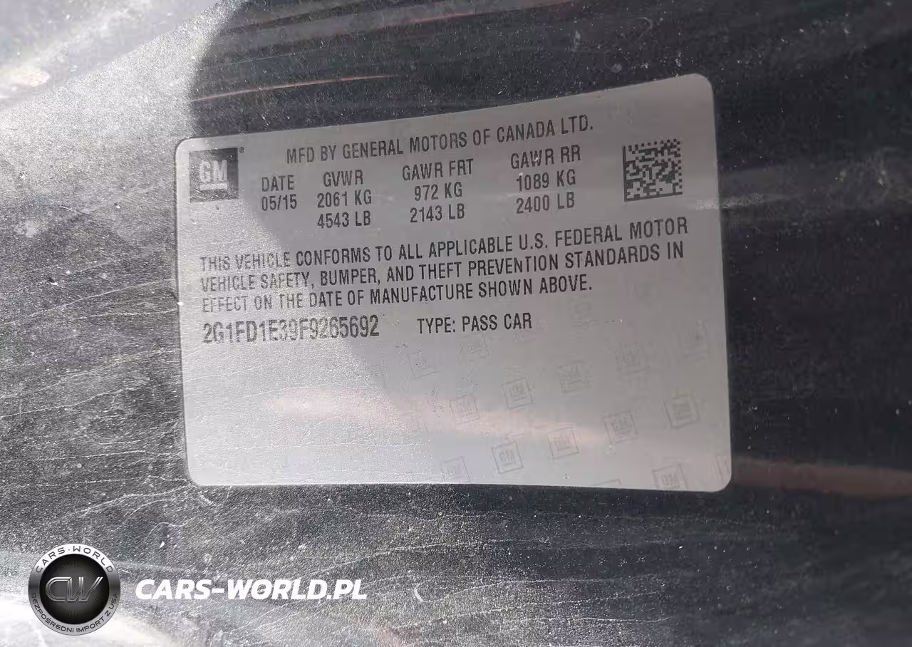 IAAI Nr: I-44466945 VIN: 2G1FD1E39F9265692 Port: Savannah, GA