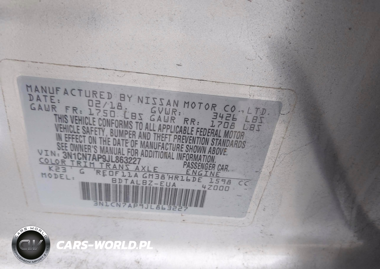 IAAI Nr: I-44468149 VIN: 3N1CN7AP9JL863227 Port: Savannah, GA