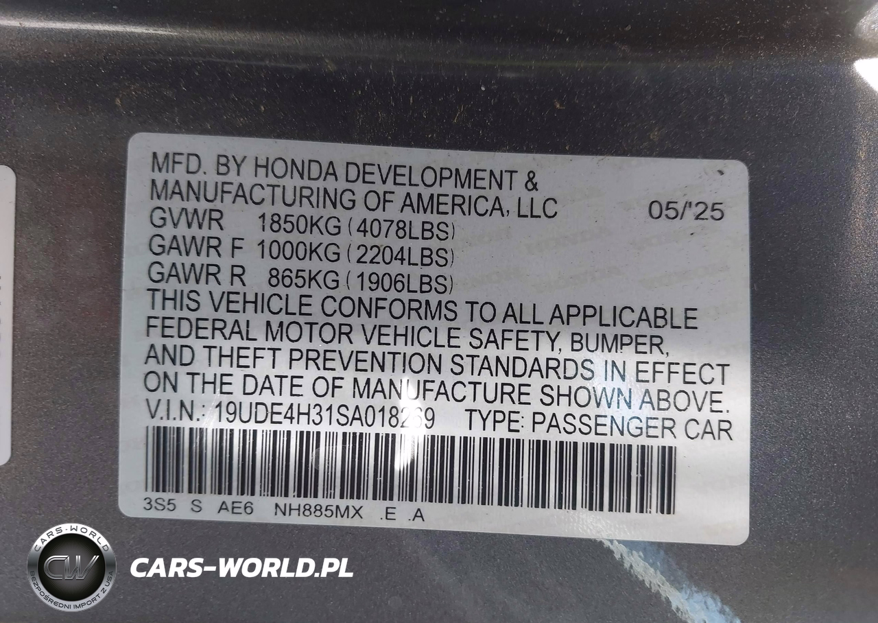 IAAI Nr: I-44468347 VIN: 19UDE4H31SA018269 Port: Los Angeles, CA
