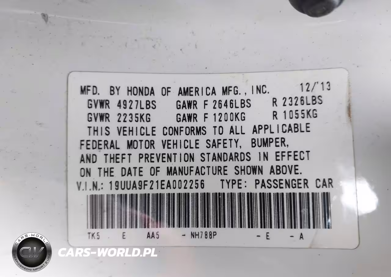 IAAI Nr: I-44469745 VIN: 19UUA9F21EA002256 Port: Indianapolis, IN