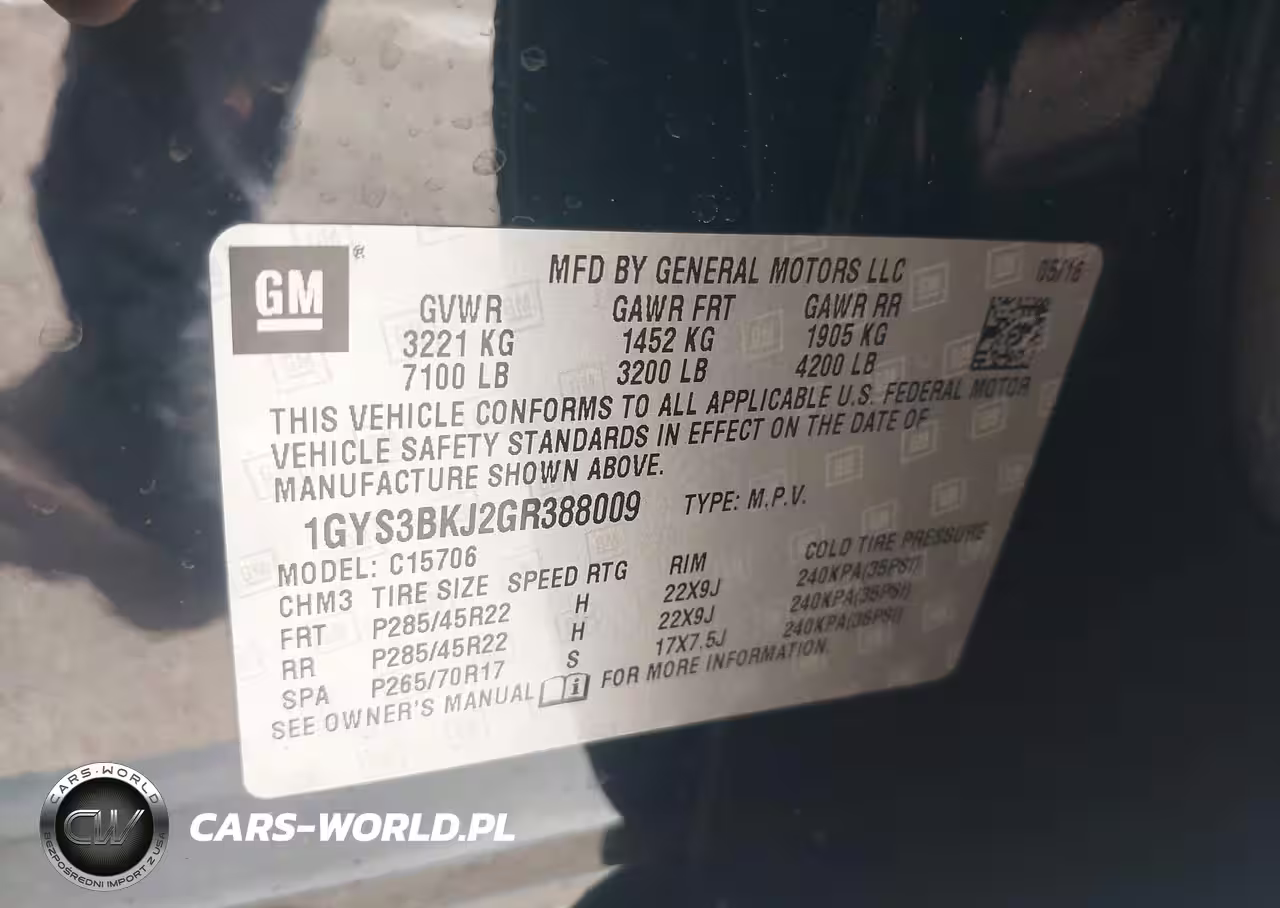 IAAI Nr: I-44469893 VIN: 1GYS3BKJ2GR388009 Port: Los Angeles, CA