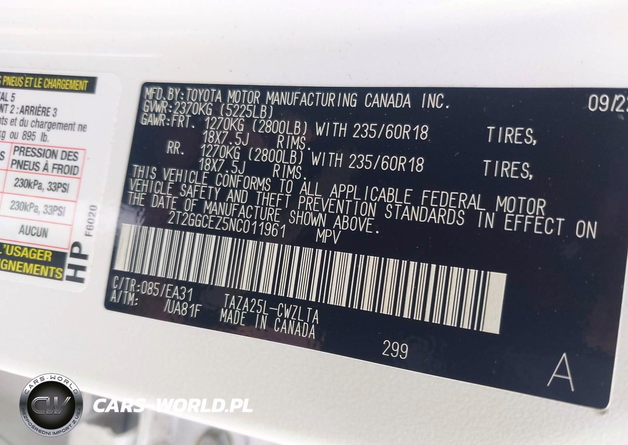 IAAI Nr: I-44471167 VIN: 2T2GGCEZ5NC011961 Port: Savannah, GA