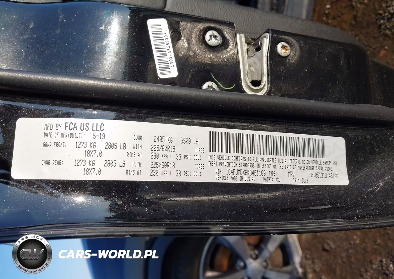 IAAI Nr: I-44471534 VIN: 1C4PJMDX6KD461189 Port: Elizabeth, NJ