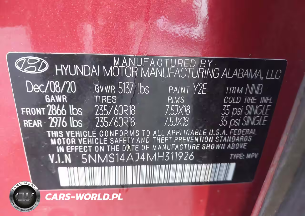 IAAI Nr: I-44471633 VIN: 5NMS14AJ4MH311926 Port: Savannah, GA