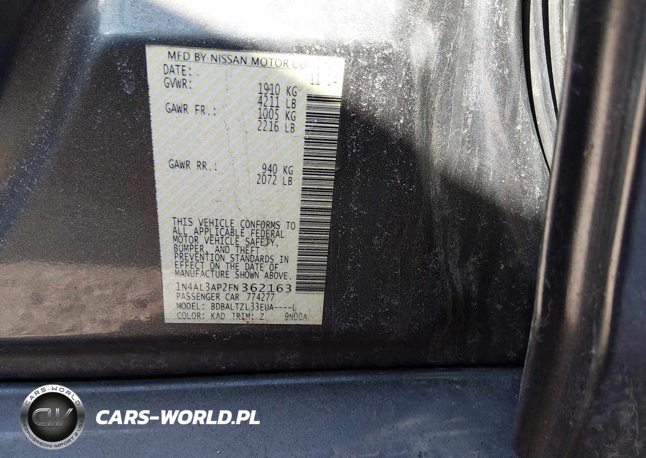 IAAI Nr: I-44471959 VIN: 1N4AL3AP2FN362163 Port: Indianapolis, IN