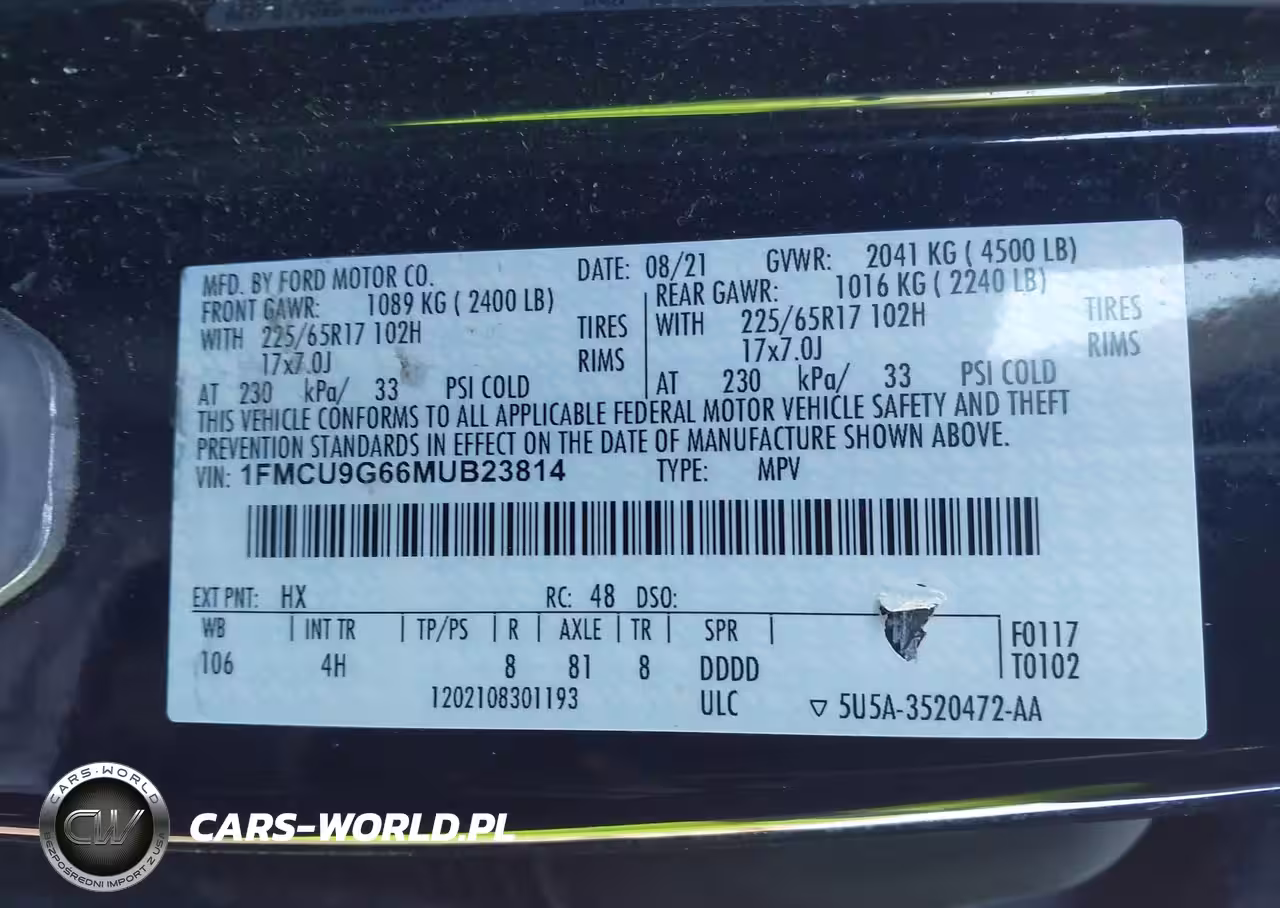 IAAI Nr: I-44473501 VIN: 1FMCU9G66MUB23814 Port: Indianapolis, IN