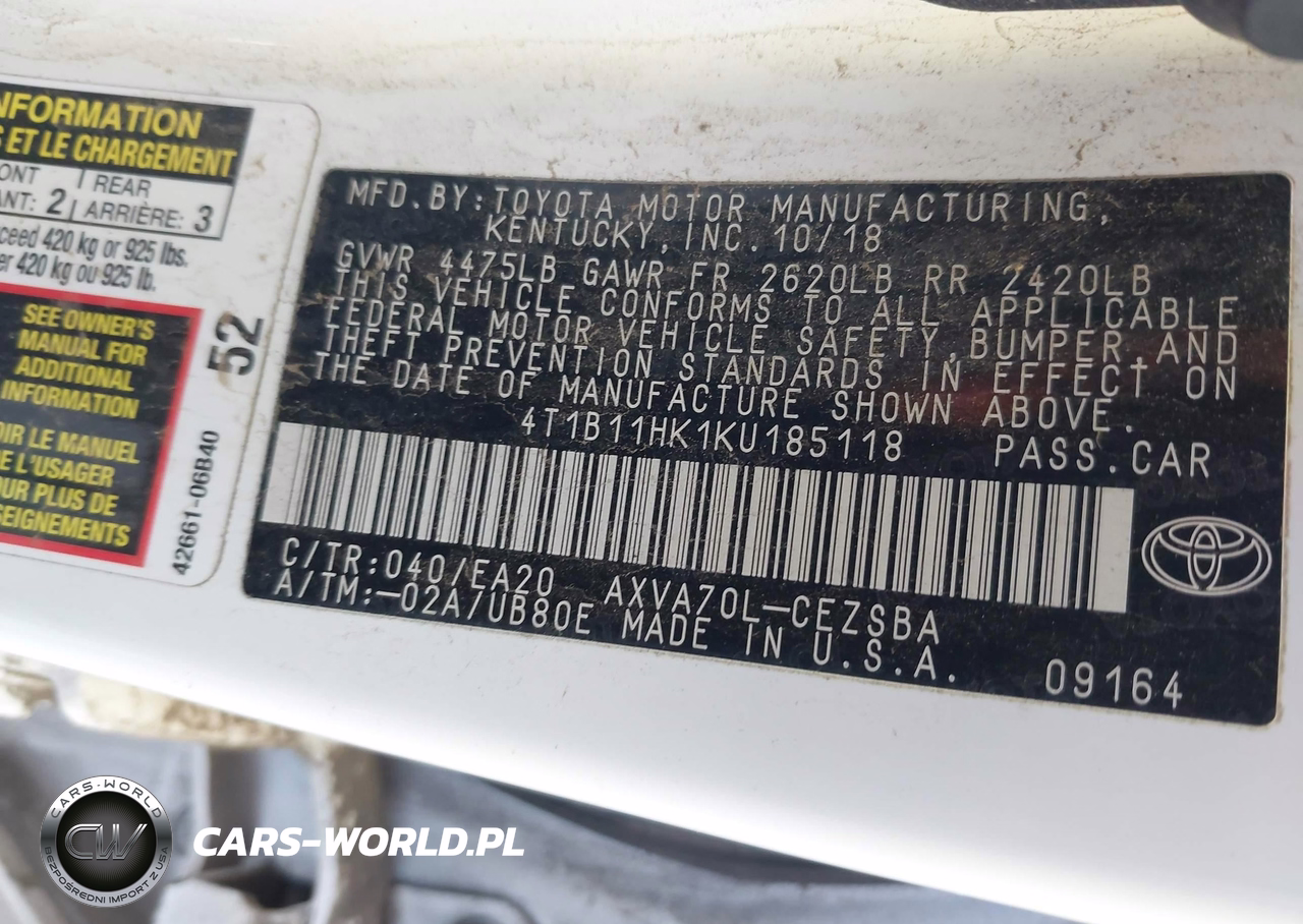IAAI Nr: I-44473986 VIN: 4T1B11HK1KU185118 Port: Los Angeles, CA