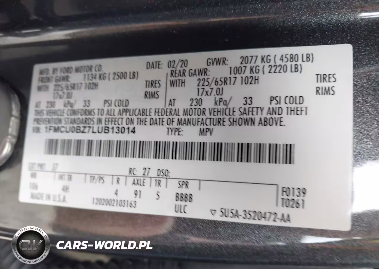 IAAI Nr: I-44474320 VIN: 1FMCU0BZ7LUB13014 Port: Savannah, GA