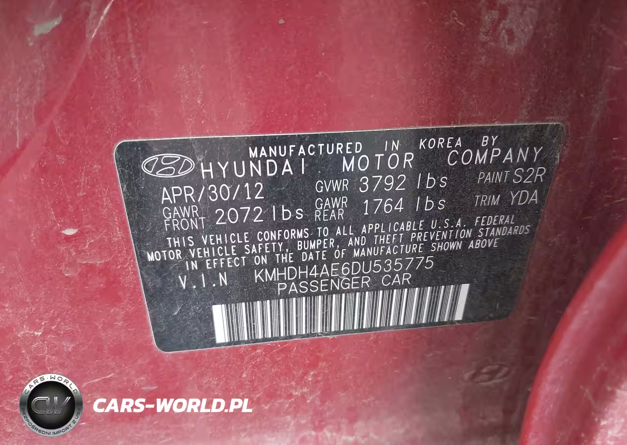 IAAI Nr: I-44474974 VIN: KMHDH4AE6DU535775 Port: Indianapolis, IN