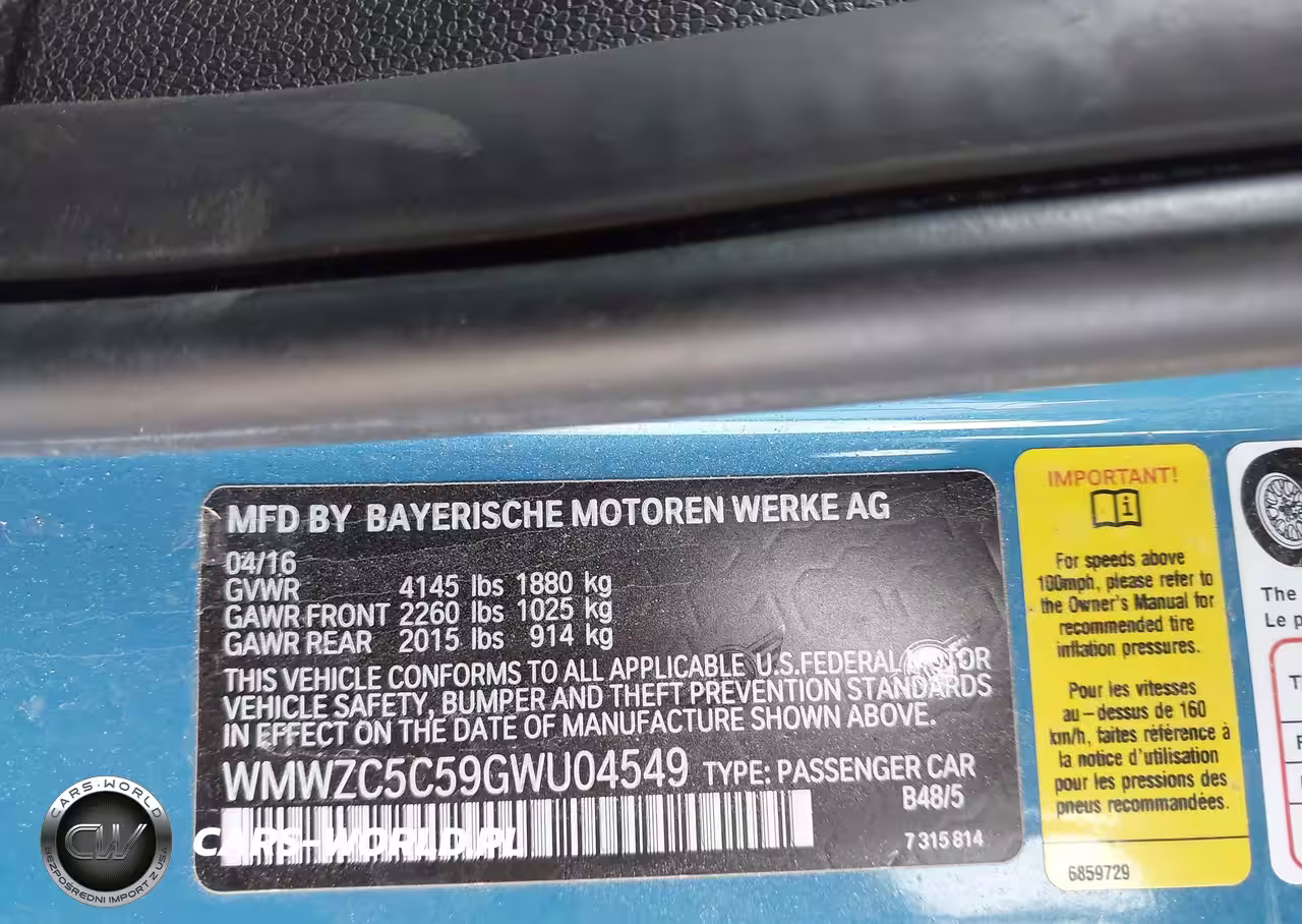 IAAI Nr: I-44475277 VIN: WMWZC5C59GWU04549 Port: Indianapolis, IN