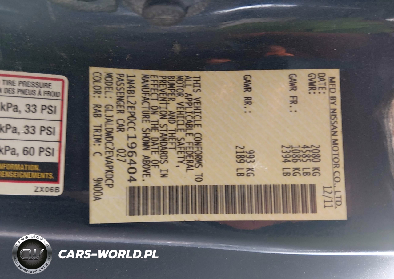 IAAI Nr: I-44475787 VIN: 1N4BL2EP0CC196404 Port: Houston, TX