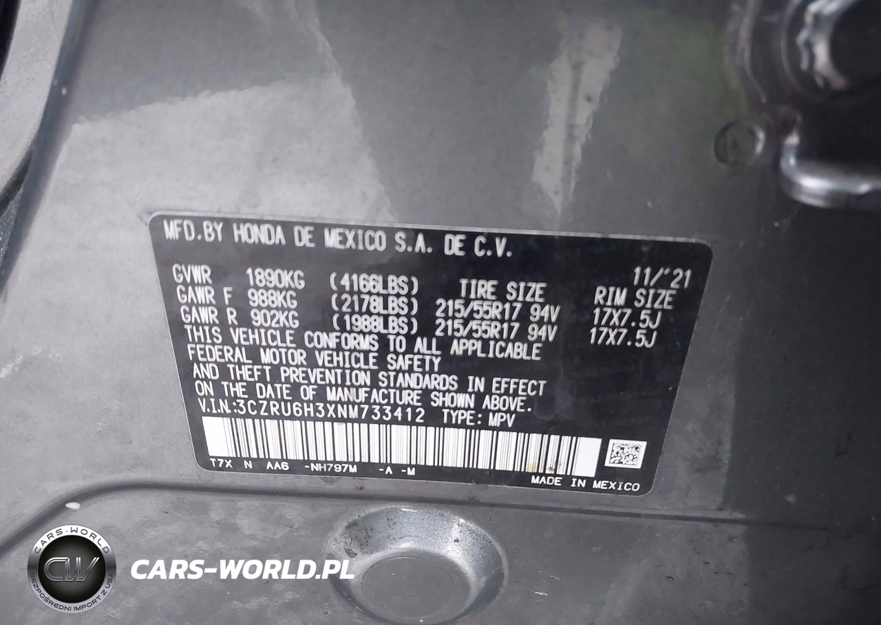 IAAI Nr: I-44477882 VIN: 3CZRU6H3XNM733412 Port: Elizabeth, NJ