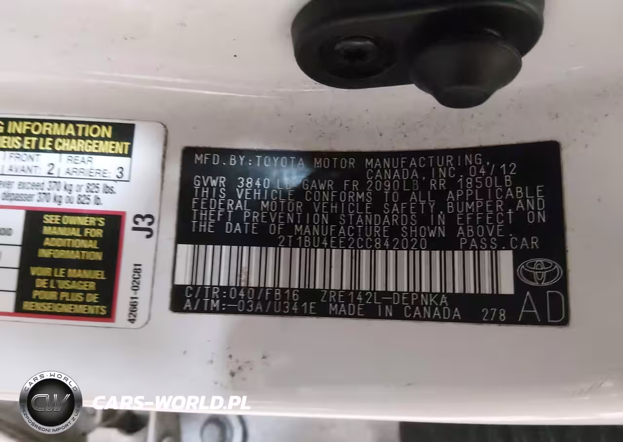 IAAI Nr: I-44478026 VIN: 2T1BU4EE2CC842020 Port: Elizabeth, NJ